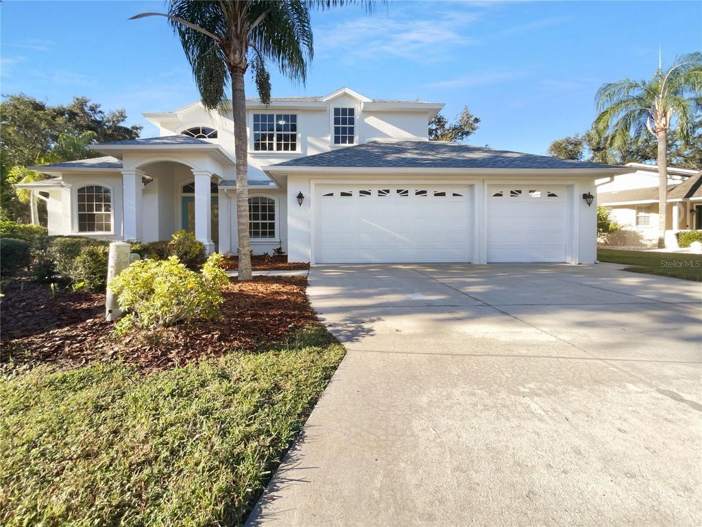 One or more photo(s) has been virtually staged. Timeless remodel in a quiet Lakewood Ranch–area enclave. Set on a low-traffic street lined with mature palms, this light-filled two-story home blends classic architecture with a fresh, move-in ready renovation. A wide three-car garage and a welcoming front porch lead to a dramatic double-door entry and soaring foyer with custom ironwork—an elegant first impression for everyday living or entertaining. Inside, flexible formal and casual spaces make it easy to spread out. The refreshed kitchen anchors the home with quartz counters, an oversized island, stainless appliances, abundant storage, and under-cabinet lighting. It opens to a comfortable room with a fireplace and built-ins—perfect for movie nights and gatherings. Thoughtful touches continue throughout: crown molding, tray ceilings, wainscoting, updated lighting, and new interior finishes that feel cohesive and calm. Retreat to a spacious private suite with a spa-style bath featuring a freestanding soaking tub, frameless glass shower, dual vanities, and serene treetop views. Secondary bedrooms are generously sized with an updated bath offering double sinks. A first-floor flex room and multiple living/dining areas provide options for an office, play space, or guest quarters as your needs evolve. Out back, a screened lanai looks onto lush landscaping—ideal for morning coffee or weekend barbecues—with plenty of yard space to play. A smart alternative to new construction, this home offers more space, character, and an exceptional location—ready for your next chapter. Included 100-Day Home Warranty with buyer activation